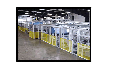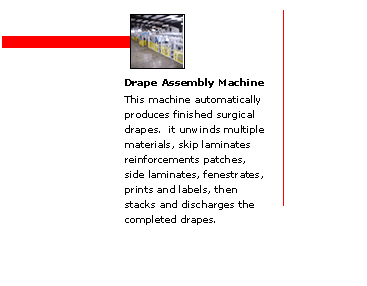 This machine automatically produces finished surgical drapes.  it unwinds multiple materials, skip laminates reinforcements patches, side laminates, fenestrates, prints and labels, then stacks and discharges the completed drapes.